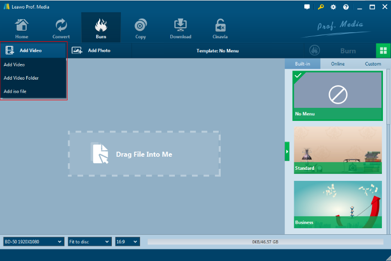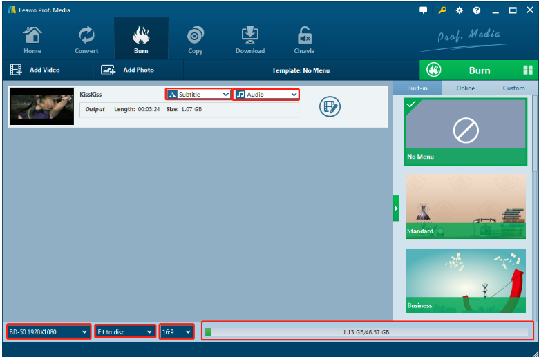 第 3 部分:使用刻录机将下载的视频刻录到 DVD/蓝光光盘 Leawo 蓝光刻录
