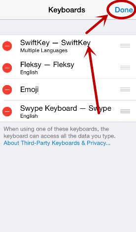 6. 点击 添加新键盘...您将在下方看到已安装的键盘应用程序。 第三方键盘.