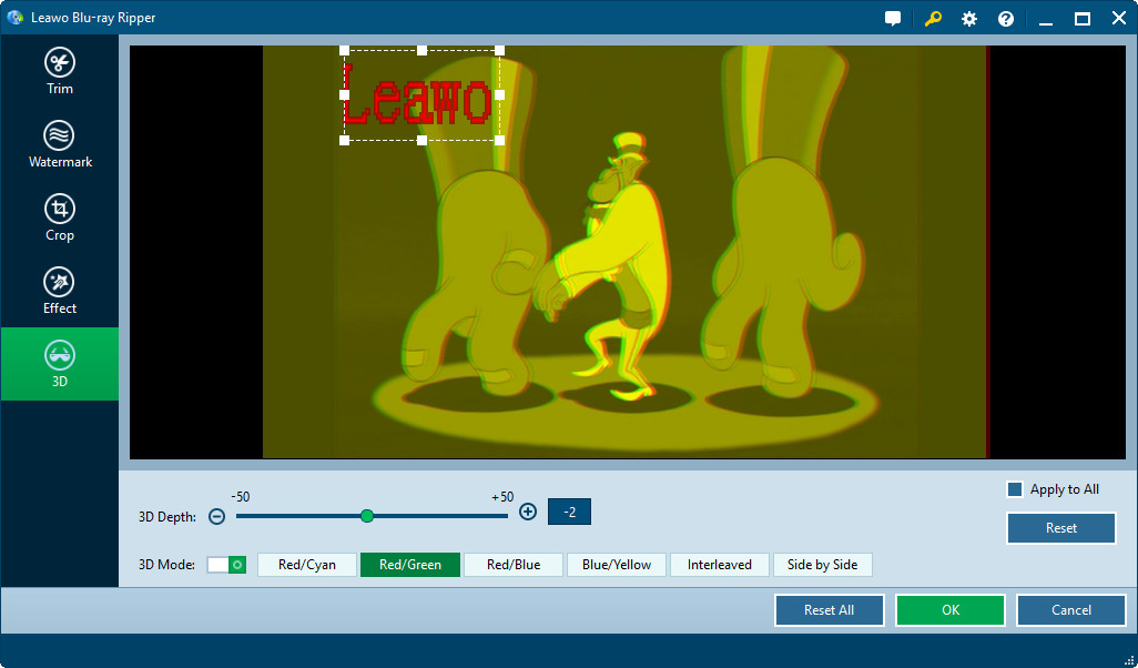 将蓝光转换为 MKV 3D 并排,你可以使用 Leawo Blu-ray Ripper 为了达成这个。 Leawo Blu-ray Ripper 是一款基于 Windows 的专业 2D 蓝光 3D 视频转换器。它可以将 2D 蓝光转换为 3D 各种格式的视频,例如 3D MKV, 3D MP4, 3D AVI, 3D H.264, 3D FLV等,共有6种不同的 3D 多种电影效果供您选择:红/青、红/绿、红/蓝、蓝/黄、交错、并排。因此,您可以自由地使用这款 2D 蓝光光盘来 3D 视频转换器创建并排 3D 在您的电脑上将 2D 蓝光电影转换为 MKV 视频。以下指南将向您展示如何将 2D 蓝光转换为并排 3D MKV 详细信息。