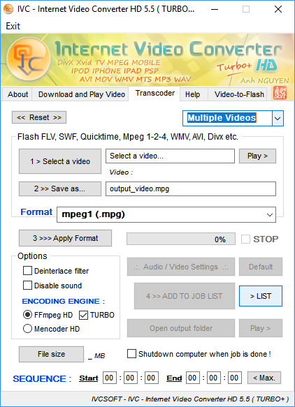 Internet Video Converter 是一款简单易用的视频转换器,能够将您的视频文件转换为不同的格式。然而,与 Leawo 视频转换器,互联网视频转换器仅适用于 Windows 系统,不支持 Mac OS/Linux。这款免费视频转换器支持大多数视频格式,可以将高清视频编码为 AVI、MP4、WMV、3GP、MOV、MPG、FLV、MTS、M2TS、AVCHD 等格式。此外,它还支持 H.264、MPEG-4、Xvid 等编解码器。它集成了视频播放器,并具有提取音轨到 MP3 以及来自数字设备的电影的视频旋转。查看以下指南,了解如何使用 Internet Video Converter 将 3GPP 转换为 MOV。