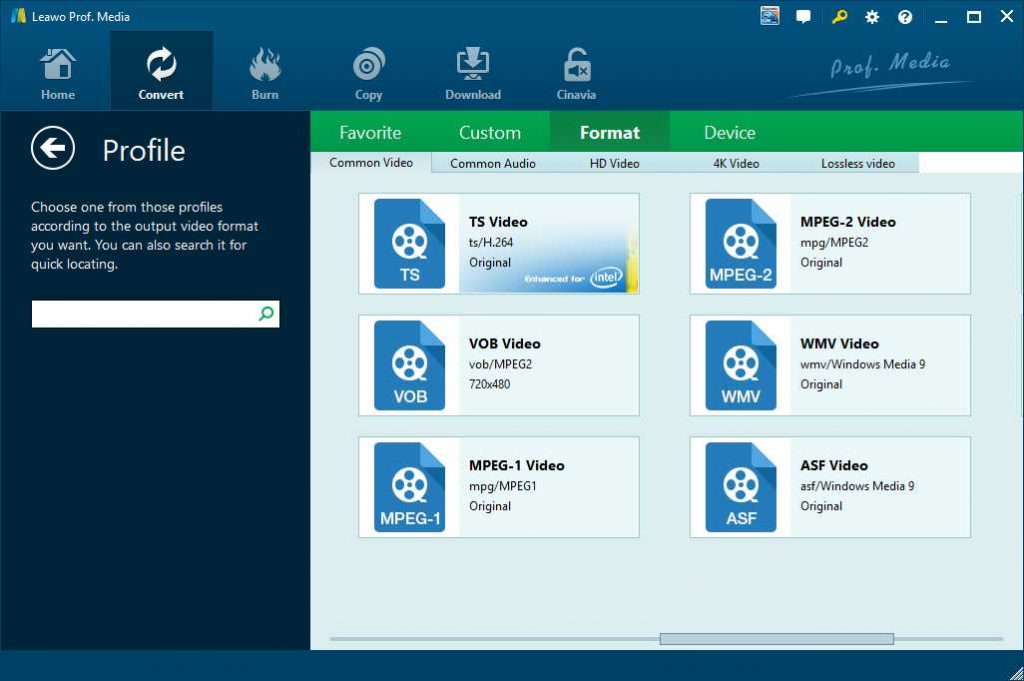 正式上线 Leawo Prof. Media 安装完成后进入“转换”模块。