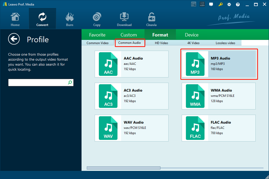 第一部分:将 M2TS 转换为 MP3 - Leawo 视频转换