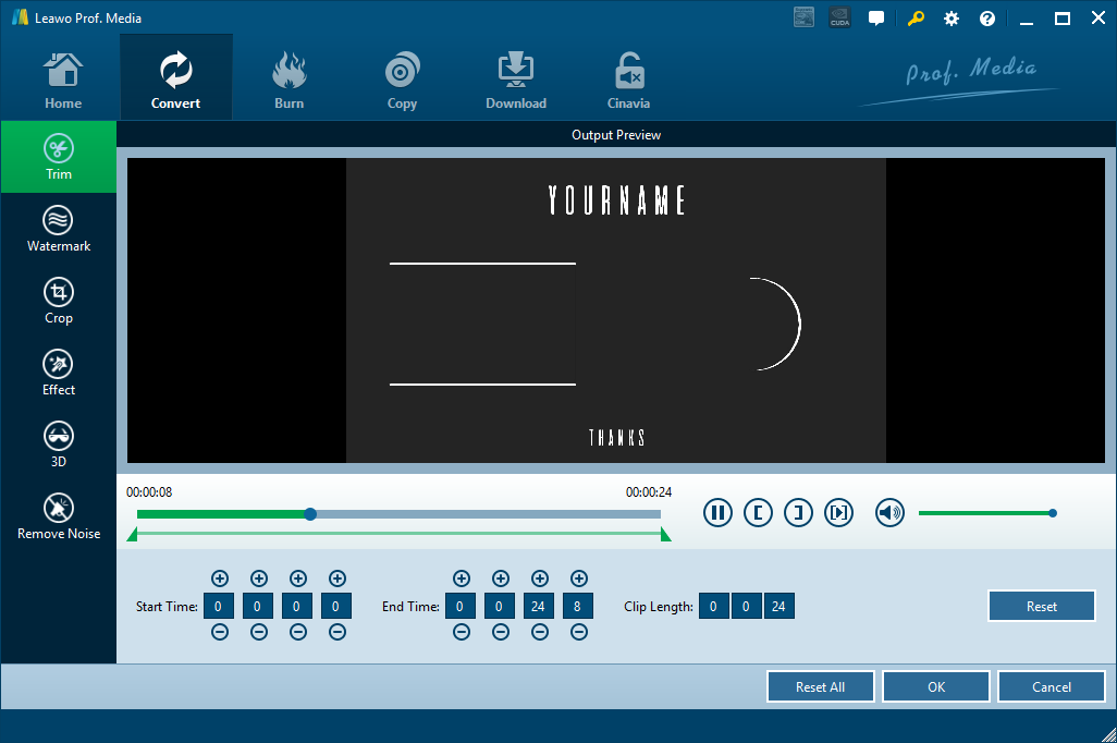 Leawo 视频转换器是一款专业的视频转换程序,支持多种格式。 180 支持视频或音频格式的输入和输出。配备先进的视频转换引擎, Leawo 视频转换器能够以比平均速度快 6 倍的速度将视频转换为其他格式,同时保持原始的视频和音频质量。此外, Leawo 视频转换器还内置了一个实用的视频编辑器,使您可以对视频进行各种调整,包括剪辑、裁剪、修改视频参数等。 为视频添加图像或文字水印,加入 3D 对视频进行特效处理并消除噪点,让您在将 M2V 视频转换为 MPEG 之前,拥有更大的自定义自由。