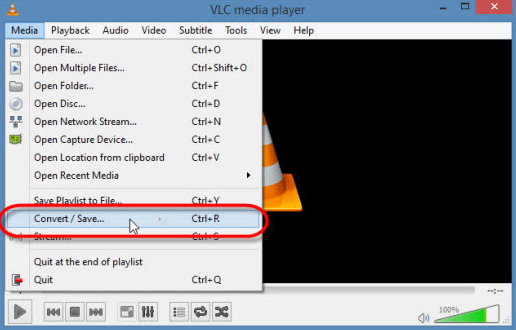 步骤1: 正式上线 VLC 播放器。在工具栏中,找到“媒体”,然后导航到“转换/保存”