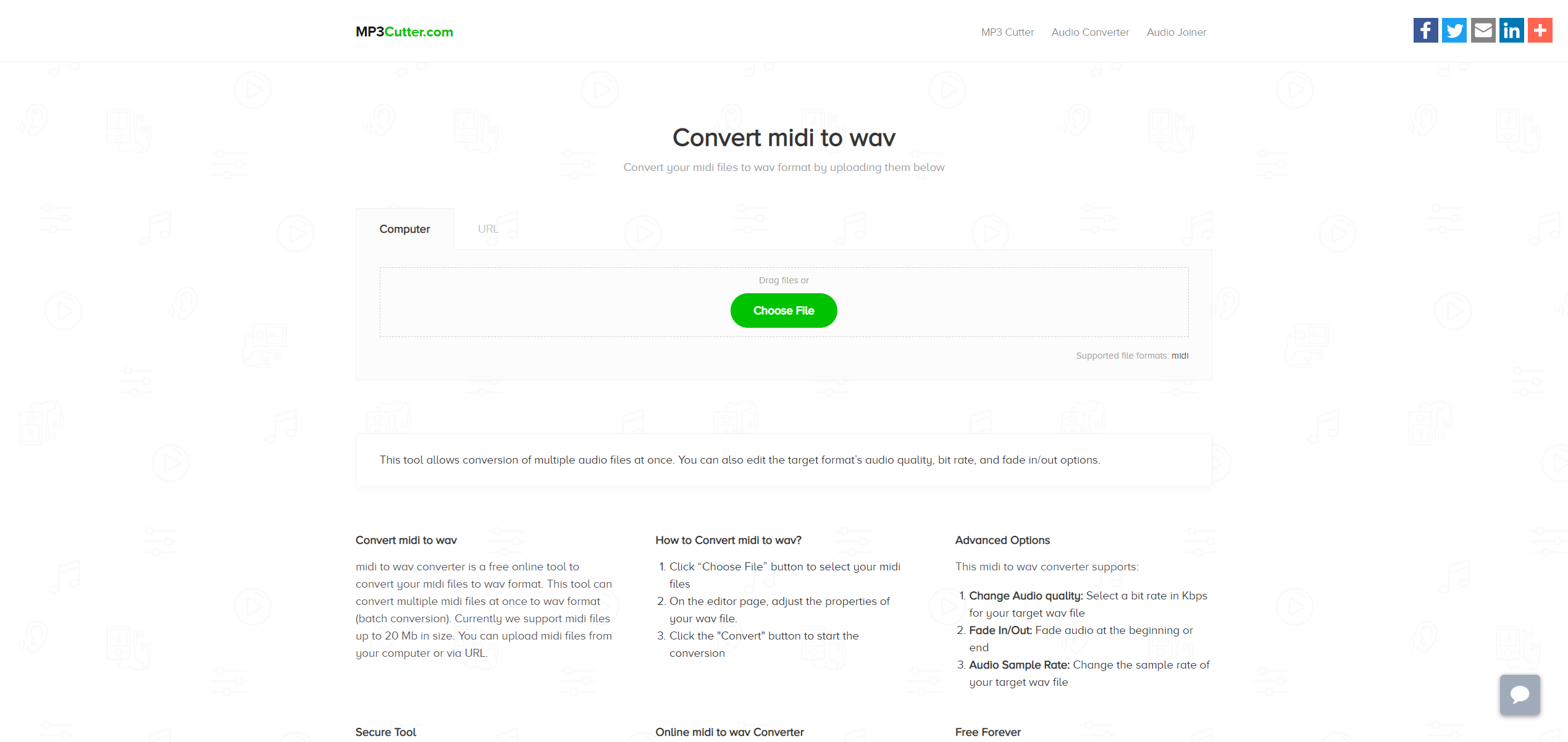 1. 直接打开这个免费在线 MIDI 转 WAV 文件转换器的网页:https://www.mp3cutter.com/midi-to-wav。