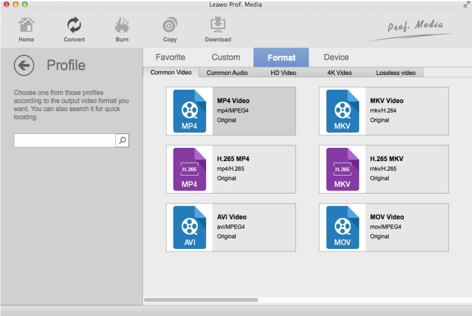 步骤1: 准备好源 MOV 视频,然后下载并安装 Leawo 适用于 Mac 的视频转换器。有两个版本。 Leawo 视频转换器:有 Windows 版本和 Mac 版本。请确保为您的 Mac 电脑下载 Mac 版本。