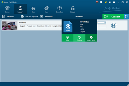 如前所述,此视频转换器支持 180 视频和音频格式,如常见视频(MP4、H.265 MP4、MKV、H.265 MKV、MOV 等)、常见音频(AAC、AC3、WAV、 MP3、WMA、FLAC 等)、高清视频(高清 MP4、高清 AVI、高清 TS、高清 VOB 等)以及 4K 视频(4K MP4 和 4K MKV)。 此外,它还集成了内部视频编辑器和视频播放器, Leawo 视频转换器允许用户 编辑视频 导入视频文件后即可播放。具体来说,您可以调整视频长度、裁剪视频大小、添加视频水印、调整视频效果、将 2D 视频转换为 3D 视频,甚至借助内部视频编辑器消除视频噪音。