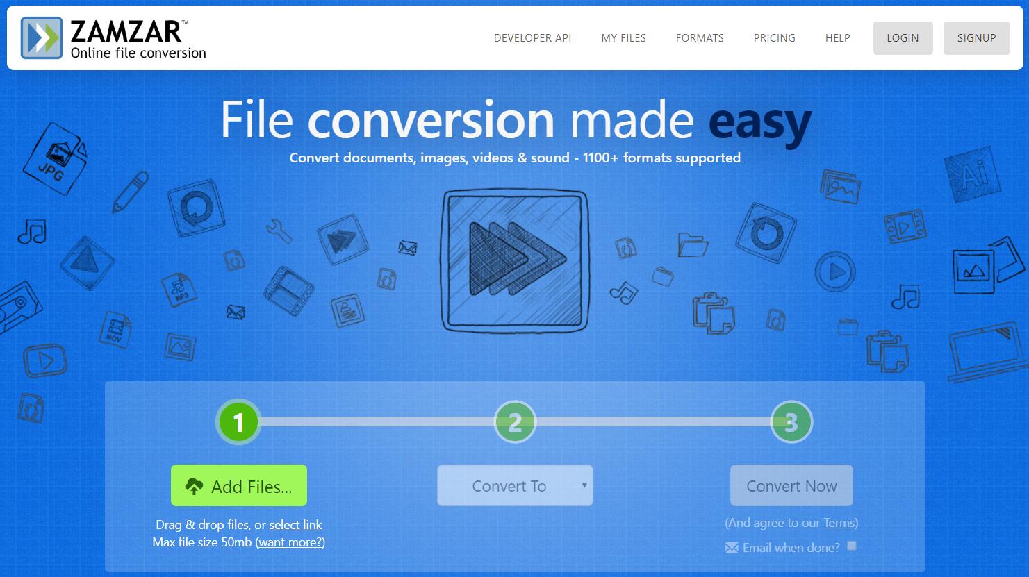 另一个著名的网络文件转换应用程序是 Zamzar,它可以将 NUT 转换为 AVI。Zamzar 为何如此受欢迎?因为它无需下载软件,因此可以在 1200 分钟内轻松转换 10 多种格式的文件。它是一款免费的 NUT 转 AVI 在线转换器,可以转换 NUT 文件,但文件大小限制为 50MB。它使用起来非常简单,只需几个简单的步骤即可快速将 NUT 转换为 AVI 文件。