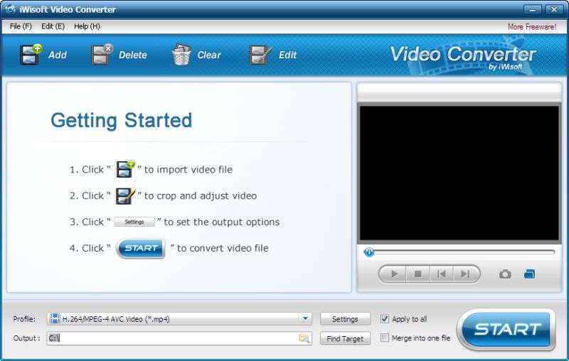 其次,iWisoft 免费视频转换器是将 NUT 转换为 AVI 的另一个选择。作为一款完全免费且功能强大的多功能视频转换器,它可以将任何视频和音频文件相互转换,例如将 AVI 转换为 WMV、将 FLV 转换为 MP4、将 NUT 转换为 AVI、将 MKV 转换为 MOV。 MP3 转换为 WMA 等。此外,它还能优化视频配置文件,并将视频转换为其他合适的视频格式,以便在各种数字设备上播放,包括 Apple 设备、Android 设备、PSP、Xbox 360 等。作为一款专业的视频编辑器,它可以自定义视频、合并视频并调整视频效果。凭借其用户友好的界面,只需点击几下即可轻松将 NUT 转换为 AVI。
