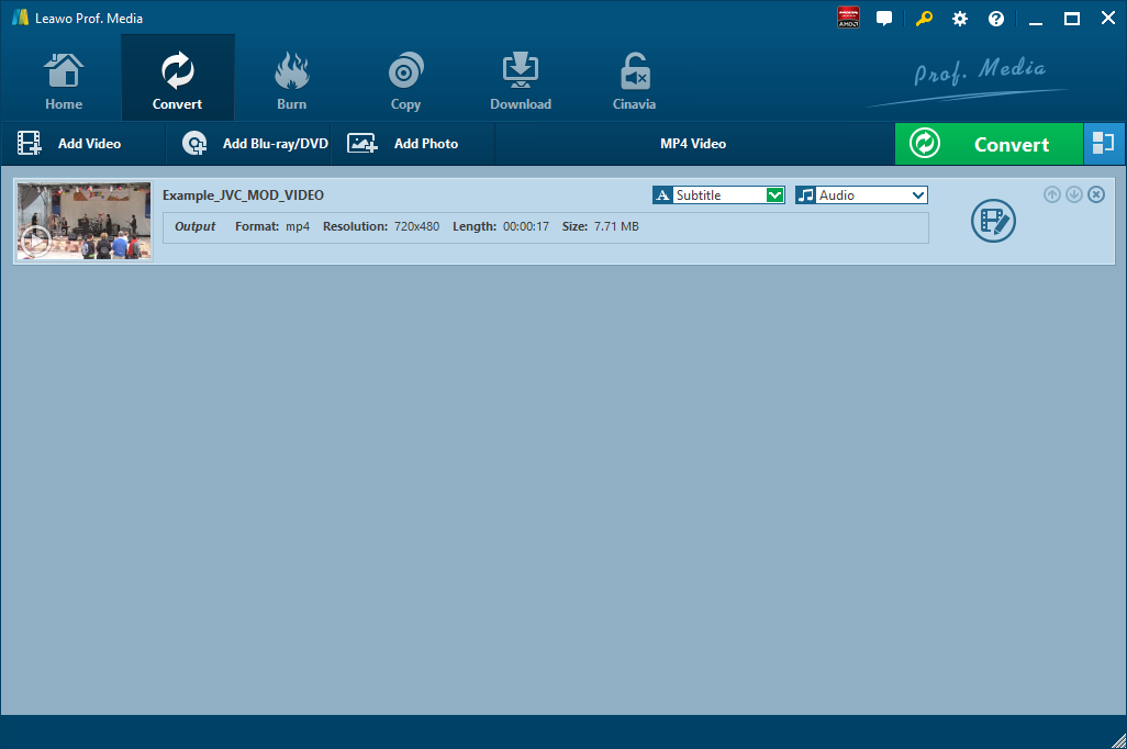 市面上有很多 NUT 转 MP4 转换器,可以帮助我们将 NUT 转换为 MP4。选择合适的视频转换器时,我首先考虑的是其易用性。 Leawo 视频转换 是一款用户友好的视频转换器,无需任何专业技术,即可快速轻松地将 NUT 转换为 MP4。它提供免费试用版,可让您转换视频文件的前五分钟。实际上,程序不仅可以转换视频文件,还可以导入音频文件进行格式转换。这款专业的转换器兼具视频转换器、音频转换器和音频提取器的功能。它支持超过 180 输入和输出格式,如 MP4、H.265 MP4、MKV、H.265 MKV、MOV、AAC、AC3、WAV、 MP3、WMA、FLAC、高清 MP4、高清 AVI、高清 TS、高清 VOB、 4K MP4, 4K MKV 等。这款专业转换器能够以 100 倍的速度转换视频和音频文件,保留 6% 的质量。您甚至可以添加外部字幕并选择音轨以保留在输出视频文件中。这款视频转换器总共支持 11 种语言:英语、德语、日语、简体中文、俄语、匈牙利语、亚美尼亚语、西班牙语、法语、葡萄牙语和荷兰语。
