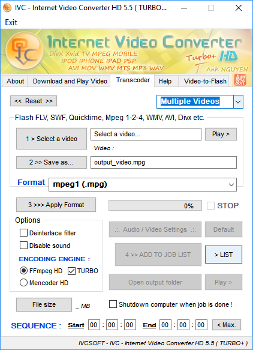 Internet Video Converter 是一款简单易用的视频转换器,能够将您的视频文件转换为不同的格式。然而,与 Leawo 视频转换器、Internet Video Converter 仅适用于 Windows 系统,不支持 Mac OS/Linux。这款免费视频转换器支持大多数视频格式,可以将高清视频编码为 AVI、MP4、WMV、3GP、MOV、MPG、FLV、MTS、M2TS、AVCHD 等格式。此外,它还支持 H.264、MPEG-4、Xvid 等编解码器。请参阅以下指南,了解如何使用 Internet Video Converter 将 TOD 转换为 MOV。
