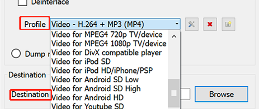 步骤3: 在新弹出的窗口中,在“配置文件”框中选择“MP4”作为输出格式,设置目标文件夹,然后单击“开始”即可开始转换。