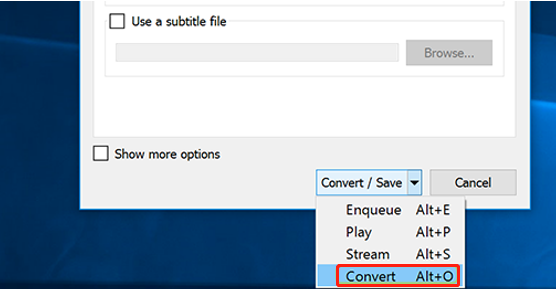 步骤1: 正式上线 VLC 播放器。在工具栏中,找到“媒体”,然后导航到“转换/保存”