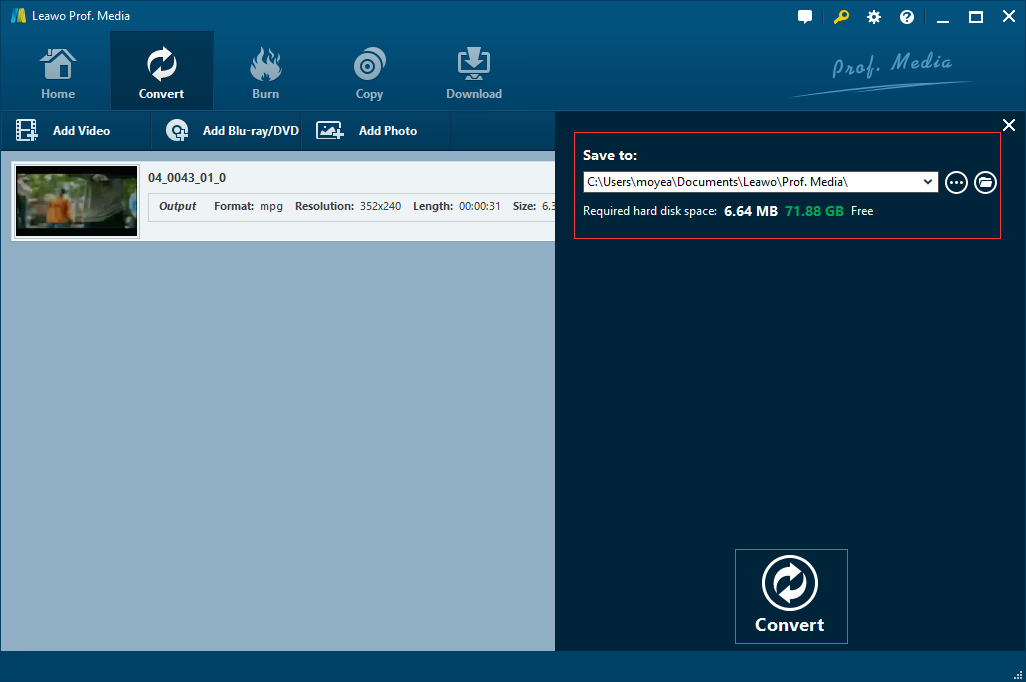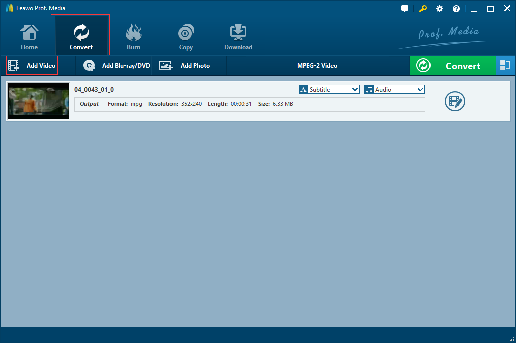 (2)使用以下工具将 WebM 转换为 MPEG 的指南 Leawo 视频转换器一步一步