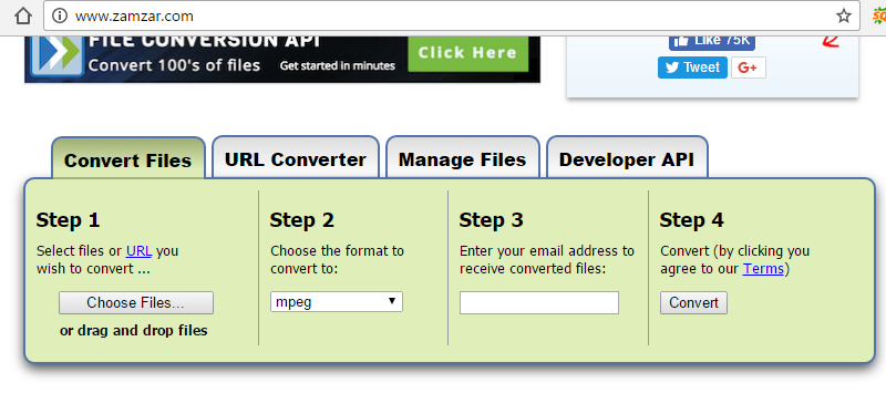 此外 Leawo 视频转换器、WebM 转 MPEG 在线转换器或许是您的另一个选择。WebM 转 MPEG 在线转换器是免费的,您无需下载其他应用程序或软件。市面上有很多 WebM 转 MPEG 在线转换器,例如 zamzar、convertio.co 和 online-convert。这里我将以 zamzar 为例,向您展示如何使用免费的 WebM 转 MPEG 在线转换器将 WebM 转换为 MPEG 的简单步骤。