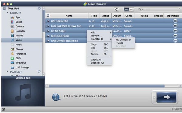 解决方案 2:如何通过 iPod 将音乐复制到 Mac Leawo iTransfer