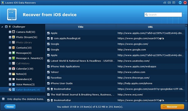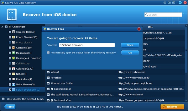 第四部分:如何使用 iPhone 恢复书签 Leawo iOS的数据恢复