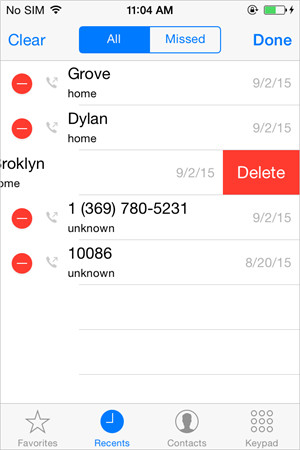 这是你 iPhone 上最明显的信息。当你的家人拿着你的手机打电话时,他们会发现你之前给谁打过电话。所以,打开你的“电话”应用,滑动屏幕,删除你不想让别人看到的通话记录。