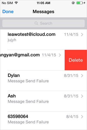 信息与通话记录非常相似,它们会泄露您想要隐藏的信息。因此,您可以通过删除 iPhone 信息应用中的对话来删除信息。您只需从右向左滑动对话即可删除信息。