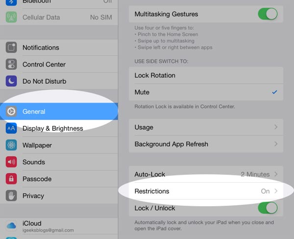 2. 进入“常规”。向下滚动并选择“限制”。