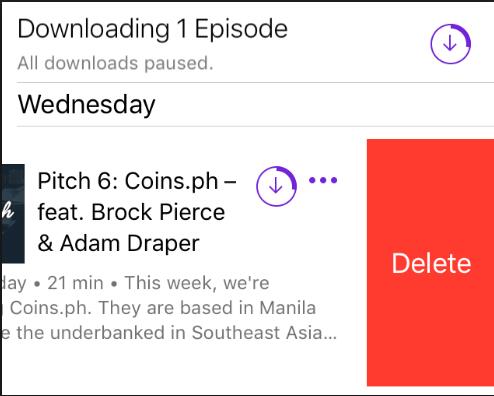 3. 找到要删除的播客,向左滑动,然后会出现一个红色的“删除”按钮。点击它,您就可以从 iPad 中删除播客。