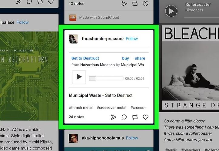 步骤2: 在 Turmblr 页面上搜索您自己喜欢的歌曲并找到您想要保存的歌曲。