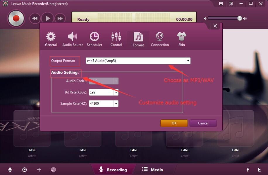 Leawo 音乐录音机能够录制任何音频源的任何音频,包括 YouTube 上的在线音频、Tumblr、Saavn、 Spotify、本地音频和麦克风音频。它内置自动滤镜功能,可以去除录音中的广告,从而保证音频质量。此外,您还可以调整比特率和采样率来提升音质。该软件支持超过 300 种格式的音频录制,例如 MP3、MP4、WAV 等,并将音频保存为 MP3 或 WAV。有关如何下载 Tumblr 音频, Leawo Music Recorder 为您提供最佳解决方案。现在就跟随我们学习如何使用 Leawo 音乐录音机。