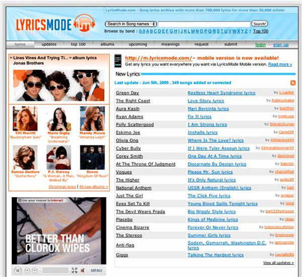这个网站最吸引人的地方是它的布局简单。你可以在主页顶部清楚地看到搜索栏,以及排名前 100 的歌曲。这个页面的主要功能是新添加的歌曲。除了拥有大量歌曲、布局井井有条、广告数量多等常见标准外,这个网站上还有一个更突出的社区。你可以在这里找到很多好音乐,这个网站的歌词非常准确,因为每个人都可以选择在发现错误的歌词时提交正确的歌词。这个网站的不同之处在于“含义”部分。每个人都可以在社区中写下他们对歌曲的想法。