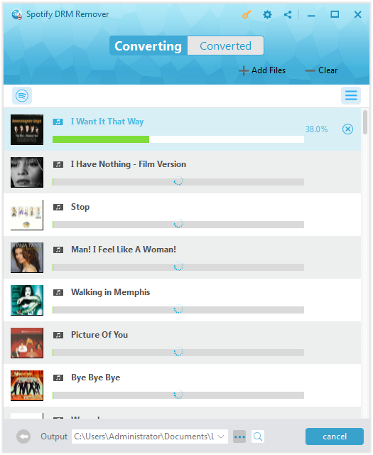 点击界面右下角的蓝色“转换”按钮,它将开始移除Spotify歌曲的DRM保护,并将其下载为无DRM版本。 MP3 同时,进度条会显示转换过程。