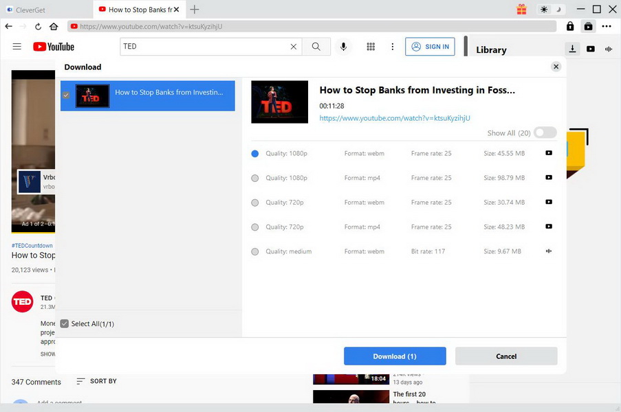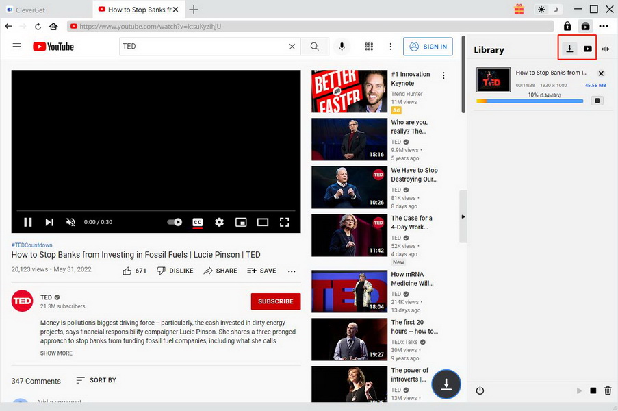 第三部分. 使用最佳 TED 视频下载器下载 TED 视频 - CleverGet 视频下载