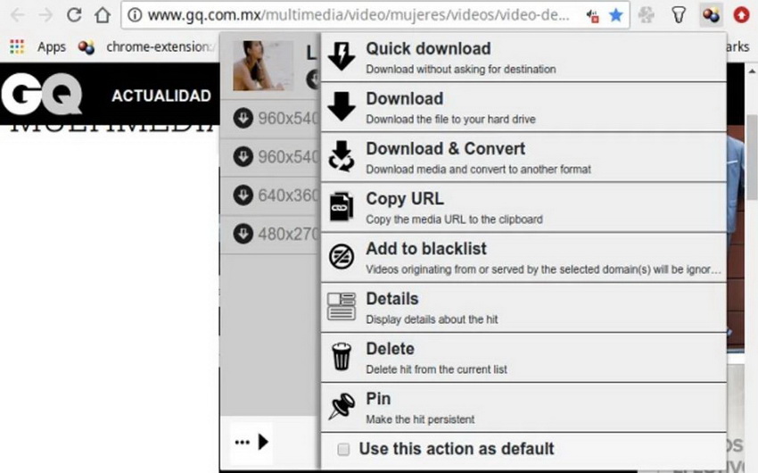打开扩展程序后,访问包含您要下载的 TikTok 视频的网站。进入网站后,单击工具栏上的“视频下载助手”图标,您将看到几个选项。
