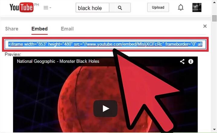 YouTube 嵌入代码也是将转换后的无 DRM 的 iTunes 视频添加到网页的最流行方式之一。要获取 YouTube 嵌入代码,您应该先将转换好的 iTunes 视频上传到 YouTube 频道,然后播放它并点击视频下方的“分享”以找到“嵌入”选项,您可以在其中获取嵌入代码。要将视频添加到网络,您应该将代码粘贴到您的网页中。