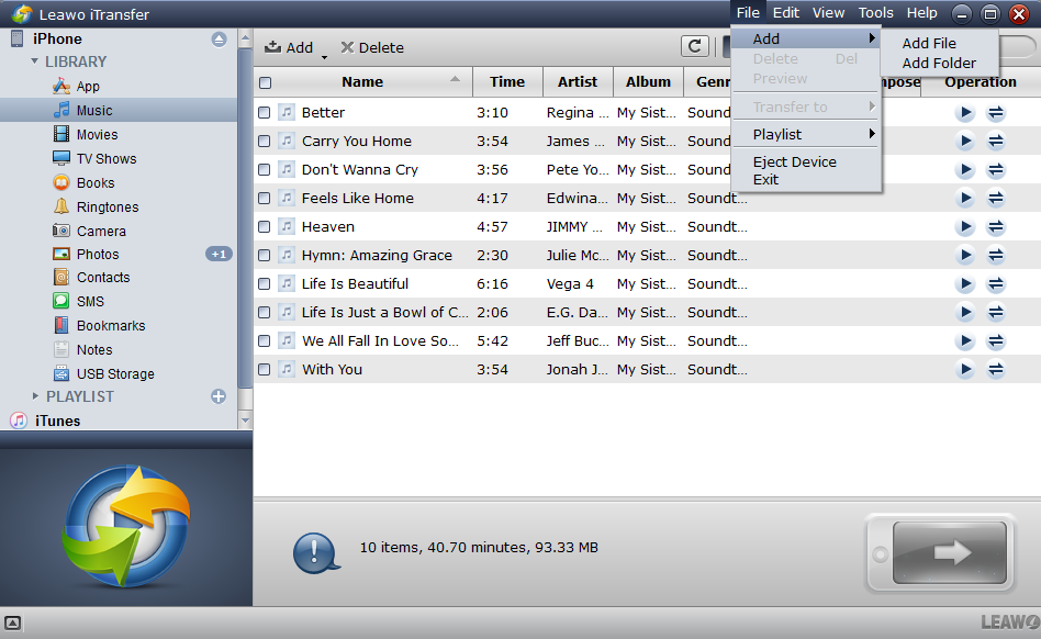 Leawo iTransfer 是一款对人们日常生活非常有用的 iPhone 数据传输程序,它使 iOS 设备的数据传输变得轻松便捷。 Leawo iTransfer 它不仅能帮助您将文件传输到 iOS 设备,还能帮助您将 iOS 设备的数据备份到电脑,例如,您可以使用这款软件将 iPad 备份到电脑。如果您感兴趣,不妨免费下载试用一下。