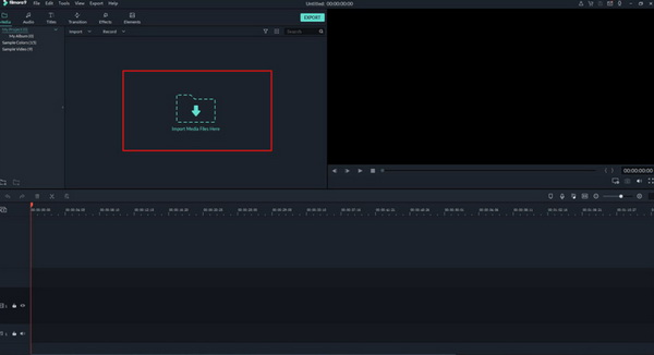 步骤2: 打开程序,开始加载要编辑的AVI文件。首先,点击“新建项目”进入主编辑面板。然后点击“导入文件”按钮,从电脑导入AVI文件。