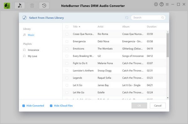安装 NoteBurner DRM 音频转换器后,在您的计算机上启动它。您将看到 iTunes DRM 音频转换器简洁易懂的界面。