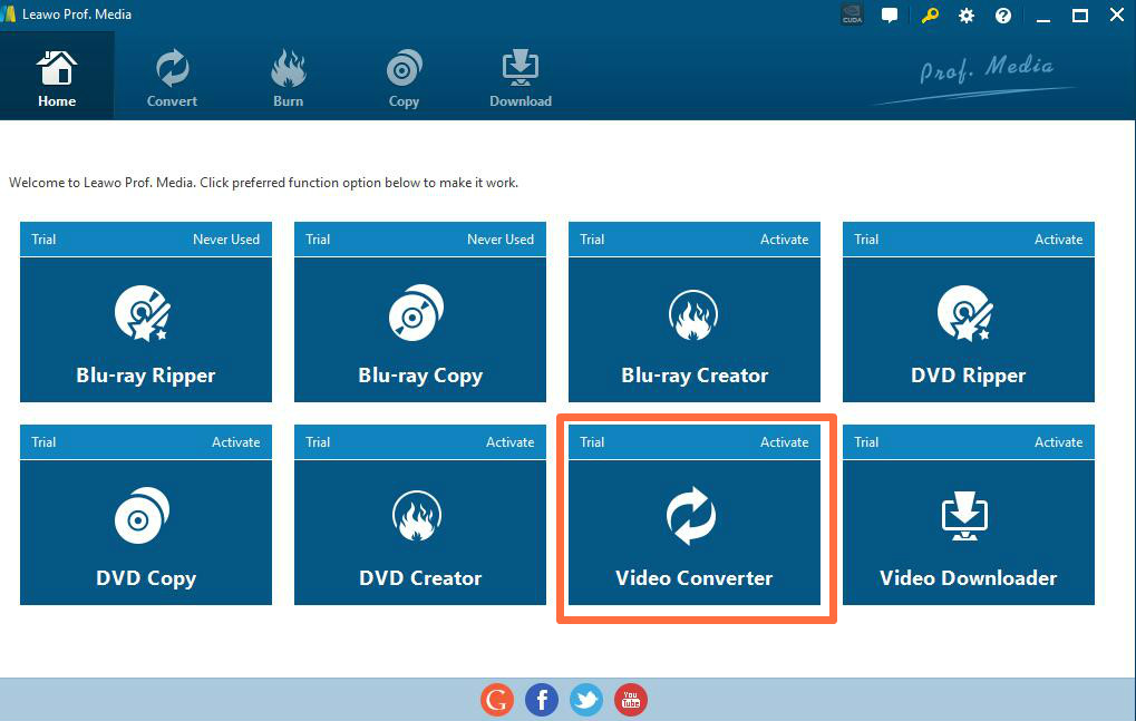 步骤 1。 下载 Leawo 视频转换器并将其安装到您的计算机上。