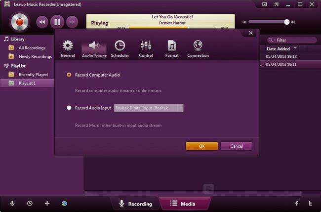 - Leawo Music Recorder 可以录制任何可用的音频文件,无论是内置输入音频文件还是计算机流音频文件。它可以录制来自计算机音频和在线音乐源的音频和音乐,例如 Pandora,YouTube, 美国在线音乐、Last.fm 等,以及麦克风或其他内置输入音频流,如 Realtek High Definition Audio、Realtek Digital Input。