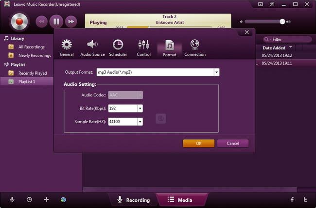 - Leawo Music Recorder 允许人们设置录音文件参数,包括音频格式、音频编解码器、比特率和采样率。用户可以使用 Leawo 录制 Pandora 音乐的录音机 MP3 或 WMA。