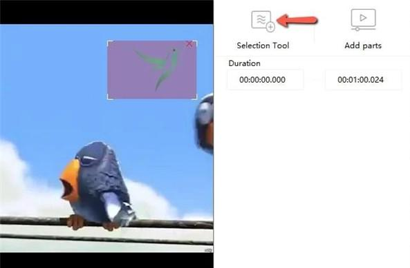 步骤 4。 视频导入后,点击“选择工具”按钮,将红色框放置在要去除水印的区域上。