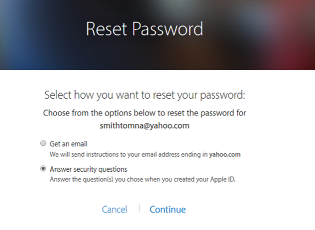 步骤 3:输入 Apple ID 后,通常有两种方法可以重置密码:使用电子邮件验证或回答安全问题。