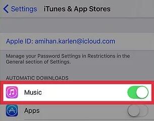 步骤3:打开“音乐”,允许iPhone自动下载iTunes Store和iCloud音乐库中的音乐。这就是如何将音乐从iCloud传输到iPhone。