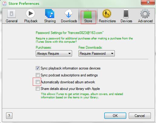 步骤3:选择“编辑 > 首选项 > 存储”。取消选中“自动下载专辑封面”旁边的复选框。