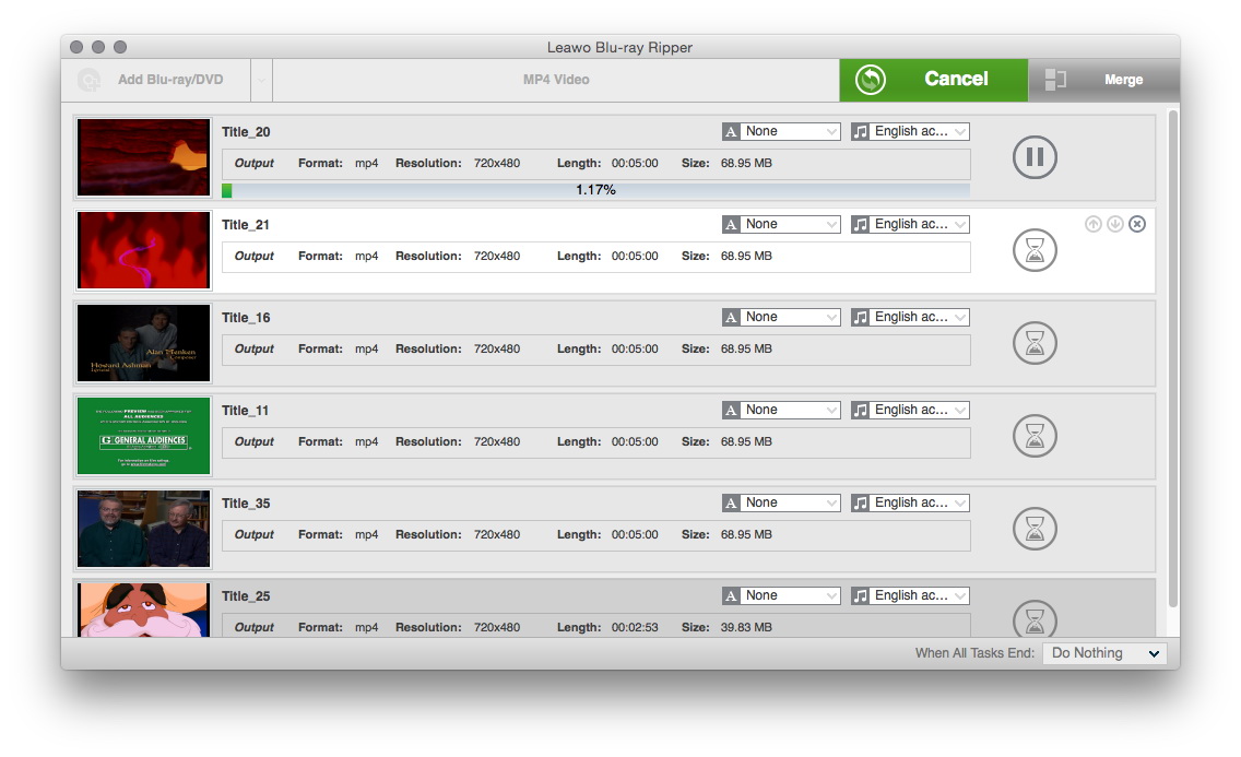 Leawo Blu-ray Ripper 可帮助您解密、翻录和转换蓝光/DVD 为 MP4、MKV、WMV、AVI、MOV、FLV 等视频/音频文件, MP3、WAV 和其他格式,不受光盘保护和地区限制。在任何家庭影院系统或移动设备上观看蓝光/DVD 电影。