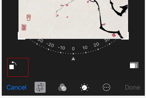 Tips:您还可以使用设备内置的陀螺仪来旋转或校正照片。轻点拨盘并倾斜 iPhone 或 iPod touch。