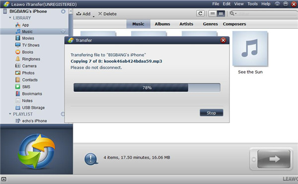 要将音乐从 HTC 传输到 iPhone,您可以使用这款第三方软件。它确实在众多传输工具中脱颖而出。如果您遇到传输问题,我建议您尝试一下这款程序。它功能强大,能够在 iOS 设备、iTunes 和 PC 之间管理和传输 12 种不同类型的文件。目前,它在 HTC 和 iPhone 之间的音乐传输方面没有任何缺陷。请关注我,了解如何使用这款软件将音乐从 HTC 传输到 iPhone 的详细步骤。 Leawo iTransfer.