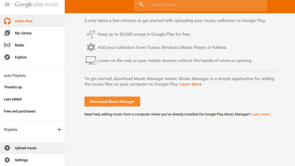 步骤3: 然后登录音乐管理器,选择“上传歌曲到 Google Play”,然后点击“下一步”。