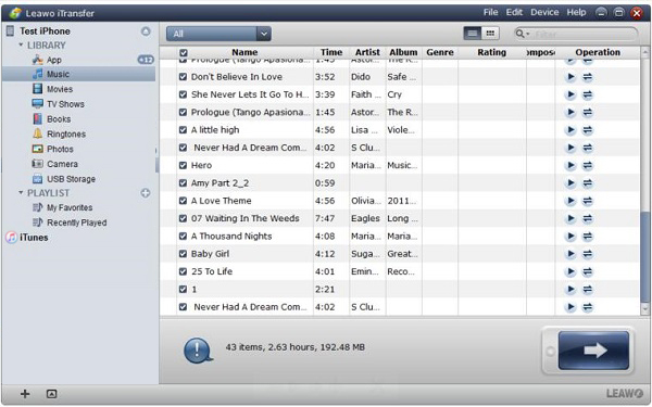 Leawo iTransfer 是一款易于使用的 Apple 设备传输软件,方便用户在 iPhone、电脑和 iTunes 之间传输音乐、电影、电视节目、应用程序、电子书、照片等。只需三个简单的步骤,您就可以轻松快速地在 iPhone 上传输不同类型的内容。此外,它对传输购买或非购买项目没有任何限制。 Leawo iTransfer 还可以将 iPhone 文件备份到电脑和 iTunes。此外, Leawo iTranfer 可以直接删除 iPhone 上的重复歌曲。因此,对于将音乐从手机移到 iTunes 来说,它确实是一个不错的选择。 Leawo iTransfer 可以免费下载,但试用版有传输次数限制。现在让我们看看如何将手机中的音乐传输到 iTunes。