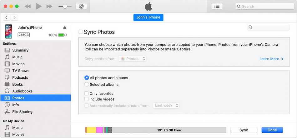 选项 5:使用 iTunes 将照片从 iPod 传输到 iPad