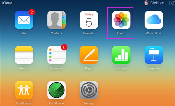 2. 在电脑上,打开 iCloud.com,并使用与 iPad 上相同的 Apple ID 和密码登录。点击主界面上的“照片”选项卡。