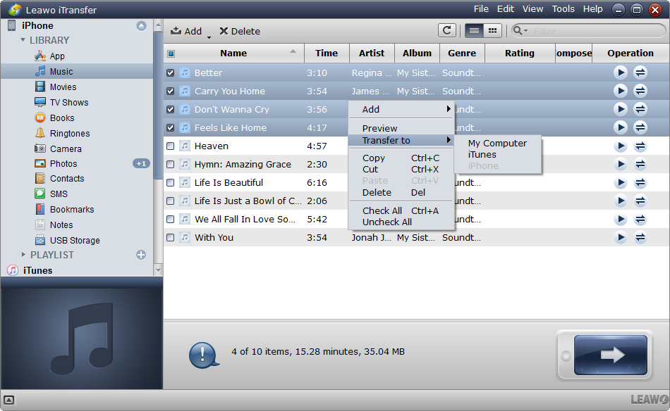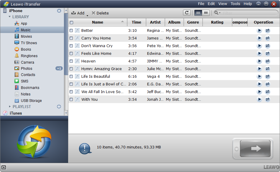 一般来说,如果您希望备份企业开发者应用程序,请尝试 Leawo iTransfer,帮助用户全面掌控媒体文件。播放列表、联系人、短信、笔记等内容只需几秒钟即可有效管理。例如,您可以 将音乐从iPhone传输到电脑.